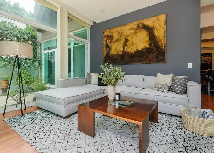 The 160 ft² New! Stunning Garden House 2 Bdr Apt Mexico City offers easy access to such tourist sites as Ecoducto, located approximately 5 minutes' walk away. This 2-bedroom apartment features Wi-Fi throughout the property.